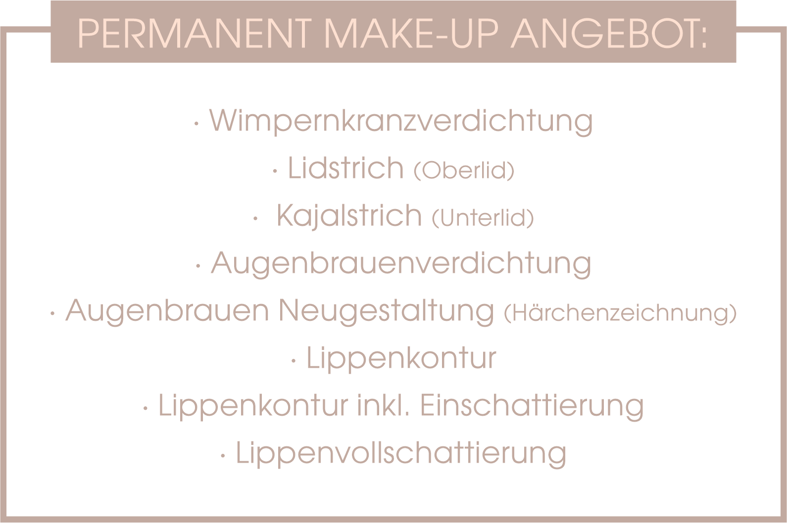Damit die behandelte Stelle sich nicht entzündet und gut abheilen kann, sollte in den ersten drei Tagen keinerlei Make-up verwendet und eine Woche lang auf Solarium, starker Sonneneinstrahlung, Schwimmen und Sauna verzichtet werden. Nach der Behandlung muss der Hautbereich gut gepflegt und geschmeidig gehalten werden. Zur Nachbehandlung muss eine Spezialcreme, die ich Ihnen mit nach Hause gebe, benutzt werden. Wichtig ist, dass die Behandlungszone geschmeidig bleibt und sich nicht zur Krustenbildung zusammenzieht. Es ist äußerst wichtig, dass Cremes aus hygienischen Gründen nie mit dem bloßen Fingern, sondern ausschließlich mit sauberen Wattestäbchen aufgetragen werden. Da während der Behandlung mehr Farbpigmente in die Haut eingebracht werden als diese aufnehmen kann, wirkt das PMU bis zum Abfallen der Kruste / Schorf ca. 3-7 Tage sehr farbintensiv und unnatürlich. Auch wenn das PMU nach einer Woche bereits wesentlich natürlicher aussieht, zeigt sich die endgültige Farbgebung frühestens zwei Wochen nach der Behandlung. Da nach der Erstbehandlung noch Änderungen in der Pigmentdichte, der Form oder Farbe erforderlich sind, werden nach 4 Wochen bei Augenbrauen, Lidstrichen und bei Lippenbehandlungen zwei Nachbehandlungen durchgeführt. Diese Nachbehandlungen sind im Preis inbegriffen.